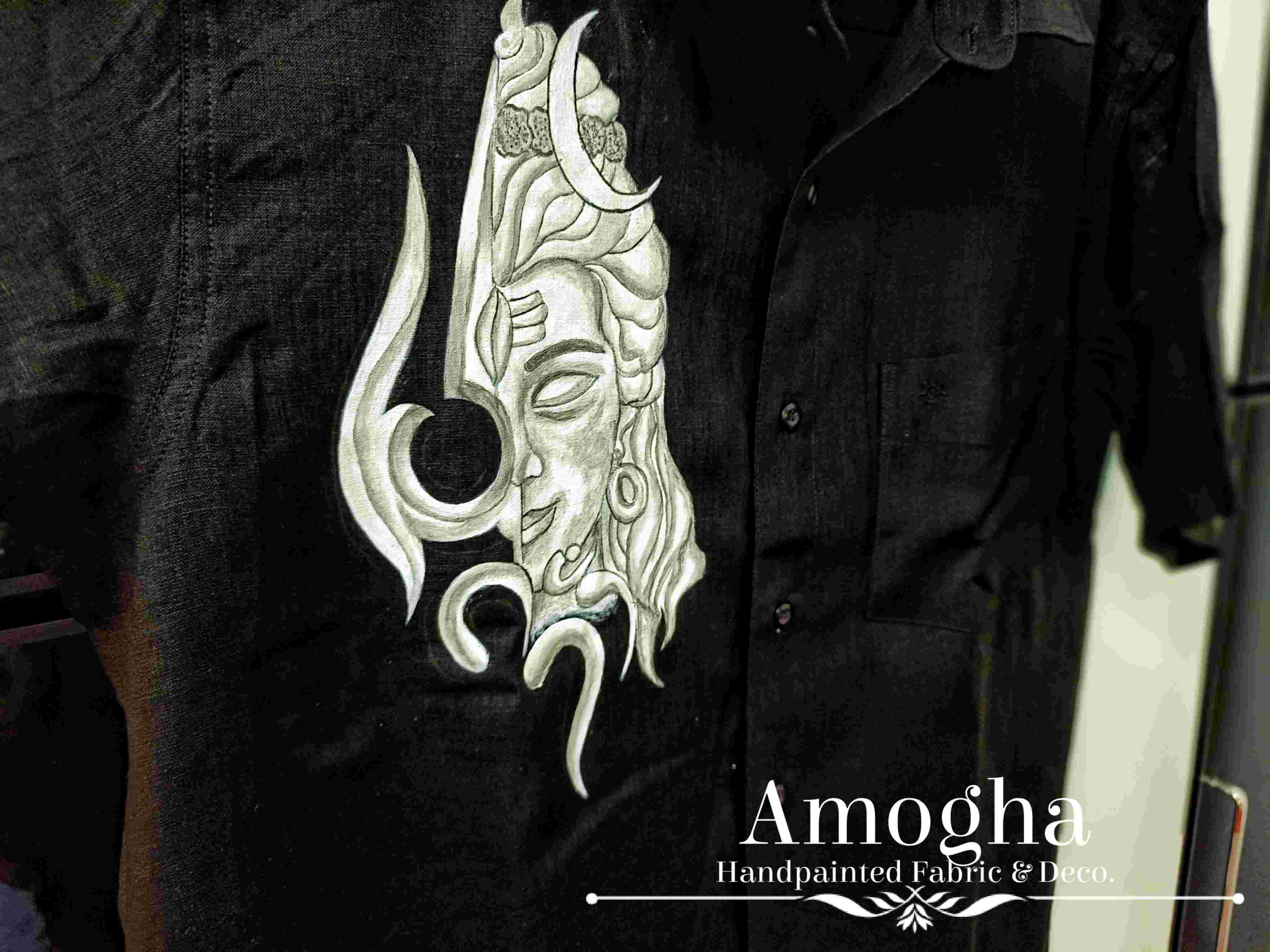 Shiva Shirt COD: 28M08 Rs 2,000 SELECTION. Choose Size: 36 38 40 42 44 48 DESCRIPTION Black linen shirt with handpainted black & white design of lord Shiva on it. Order Through Whatsapp